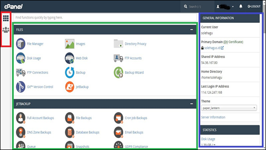 Jika kalian adalah pemula dan baru pertama kali ini mengetahui bagaimana tampilan dari layar cPanel yang kalian buka, bisa saja kalian akan mengalami kebingungan karena melihat banyaknya berbagai macam menu ataupun fitur-fitur yang disediakan. Nah, pada artikel kali ini, kalian bisa memahami fitur-fitur apa saja yang terdapat dalam tampilan pada cPanel. Berikut adalah menu pada tampilan cPanel yang bisa kalian ingat setiap bagian beserta manfaatnya: