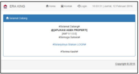 Fitur yang menampilan halaman awal dari website, biasanya tampilan awal memuat fitur untuk login dan fitu tambahan lain seperti fitur searching box, fitur promosi, dan juga informasi dari perusahaan property.