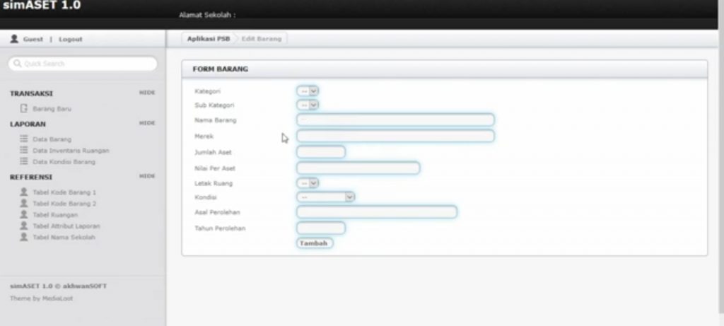 Untuk mendata barang baru dalam source code aplikasi berbasis web ini bisa dilakukan dengan menggunakan fitur yang bernama transaksi. Fitur transaksi ini memang dibuat untuk mendata barang atau asset berupa barang baru. Dengan demikian akan mudah diketahui antara asset atau barang baru dengan barang lama atau barang yang sudah ada sebelumnya.