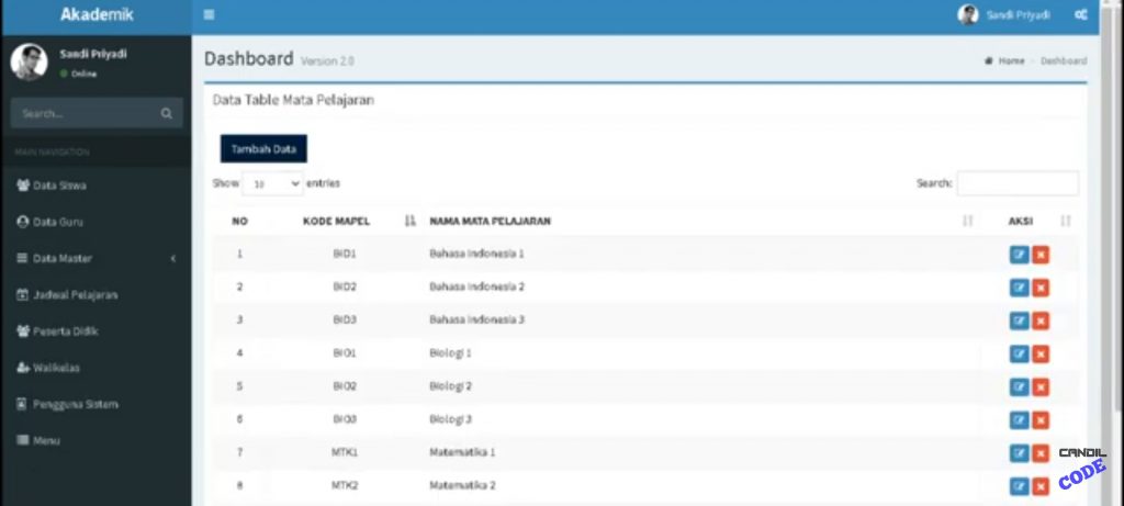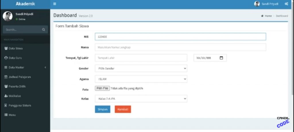 Menu peserta didik pada ini berguna untuk menampilkan daftar peserta didik berdasarkan NIS. Selain itu, admin juga bisa menambahkan data baru di bagian ini.
