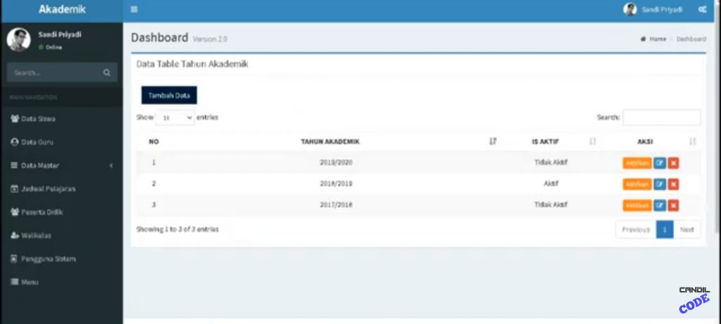 Fitur data master pada aplikasi ini terdiri dari beberapa menu, seperti data ruangan kelas, jurusan, tahun akademik, dan kurikulum.