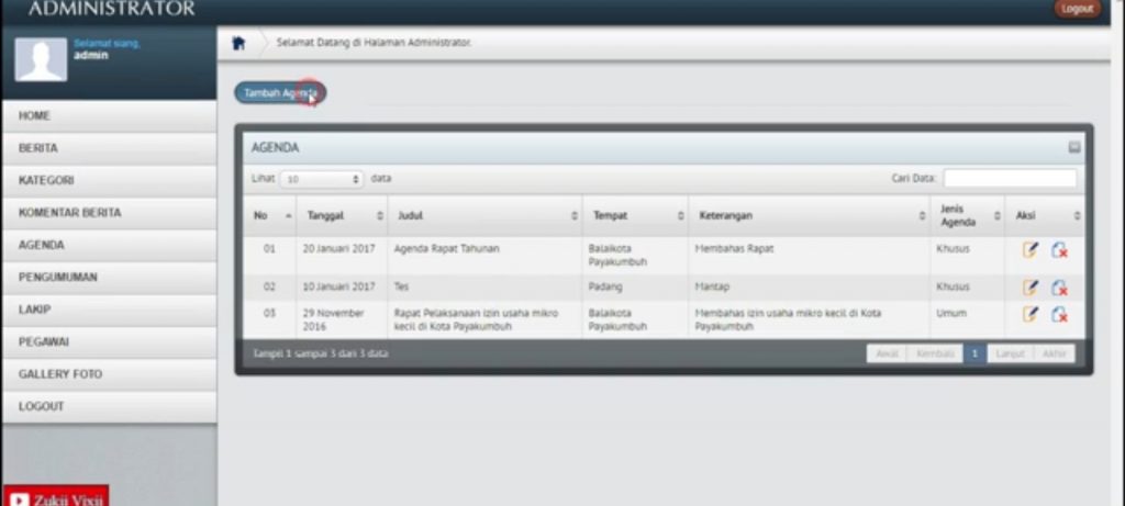 Dengan download source code aplikasi, pengguna juga bisa mengolah data berupa berbagai agenda dari dinas pertanian tersebut. Agenda yang ada dalam fitur ini bisa berupa agenda rutin dari dinas pertanian, baik yang sudah dilaksanakan maupun masih merupakan agenda yang akan datang. Agenda di sini bisa disusun secara berurutan berdasarkan tanggal dari agenda yang dilaksanakan.